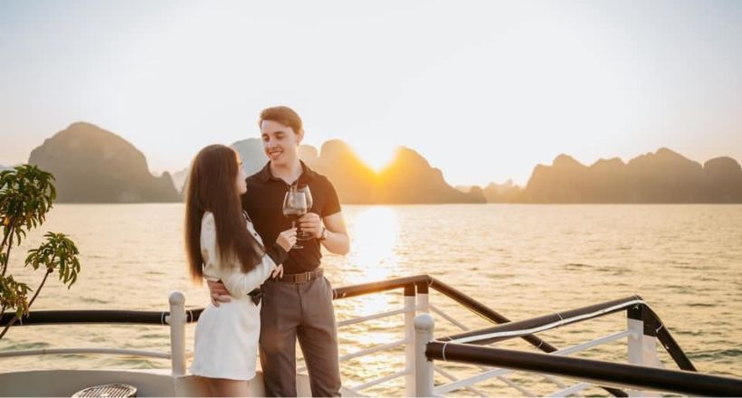 Không giống như tiệc trà trong những quán cà phê hay khách sạn, trên du thuyền Hạ Long, bạn có cơ hội ngồi trên tàu sang trọng, được bao quanh bởi biển cả vô tận và những khung cảnh núi đá độc đáo. Bức tranh hoàng hôn lung linh, ánh nắng mặt trời chiếu xuống biển, và những bức ảnh tuyệt đẹp về các đảo núi sẽ làm cho trải nghiệm trở nên tận hưởng đầy thăng hoa.