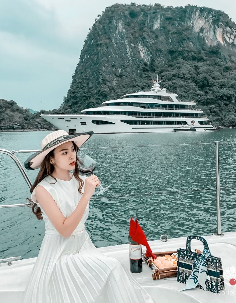 Trên du thuyền, tiệc trà chiều là một sự kết hợp tinh tế giữa hương vị trà thơm ngon và bữa tiệc mắt tráng lệ của hoàng hôn. Bàn trà được sắp đặt một cách tinh tế với những bát trà thủy tinh và các loại trái cây tươi ngon. Hương thơm của trà hòa quyện với không gian mặt trời lặn, tạo nên một cảm giác thư giãn và thanh tịnh. Du khách có thể thư giãn trên ghế du thuyền, thả mắt ngắm nhìn ánh hoàng hôn dần dần biến mất trong biển khơi rộng lớn.